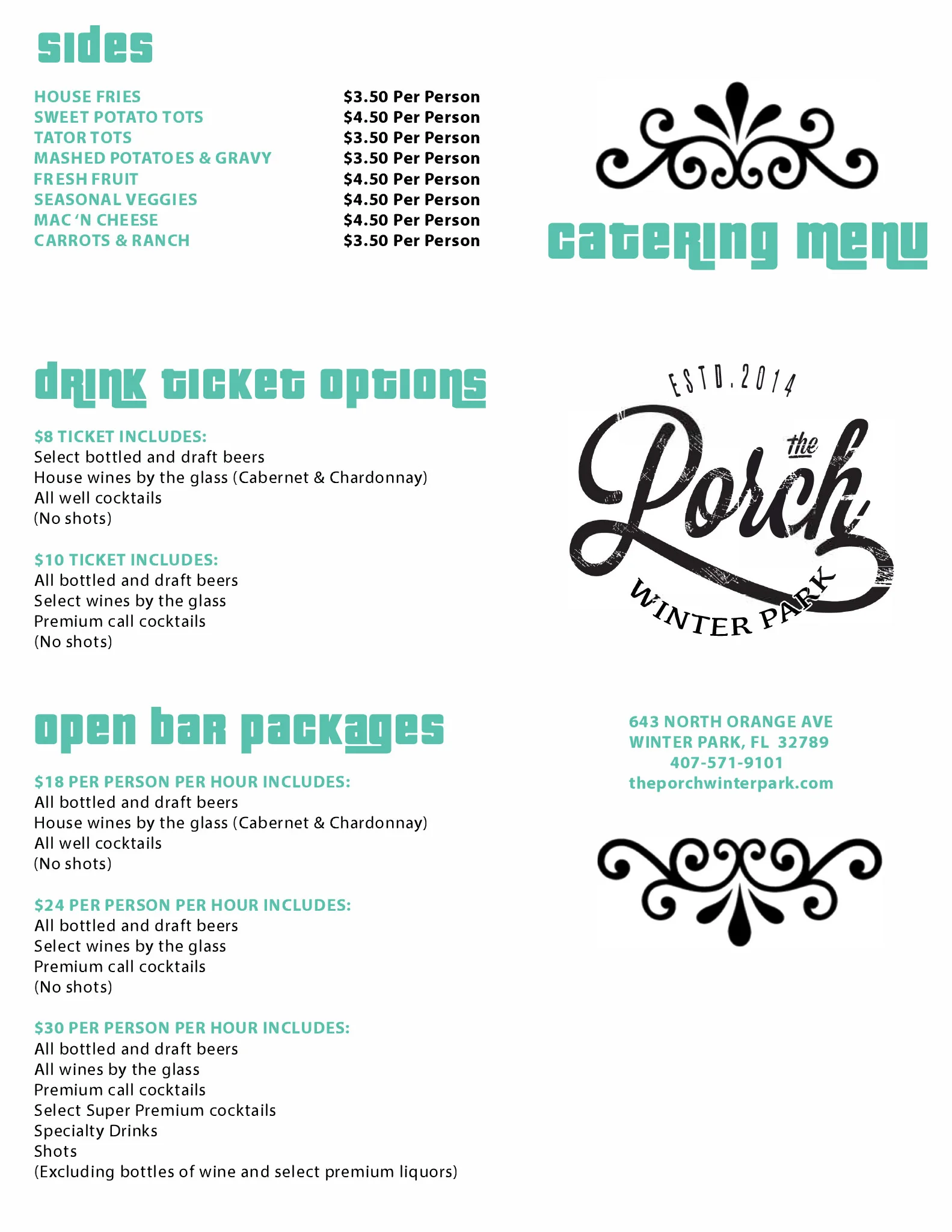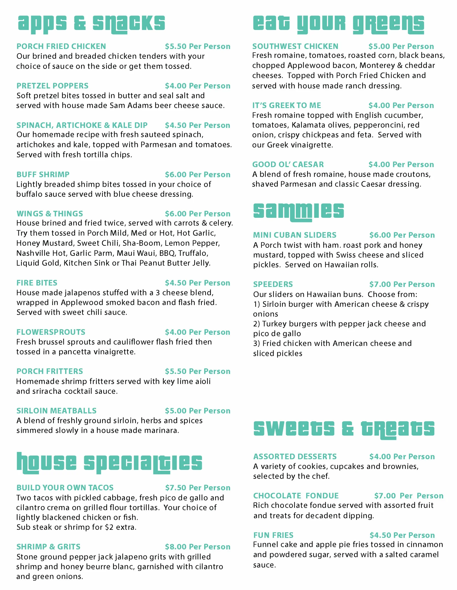 Bring the taste of The Porch to your next gathering. Perfect for office lunches, parties, and special occasions.